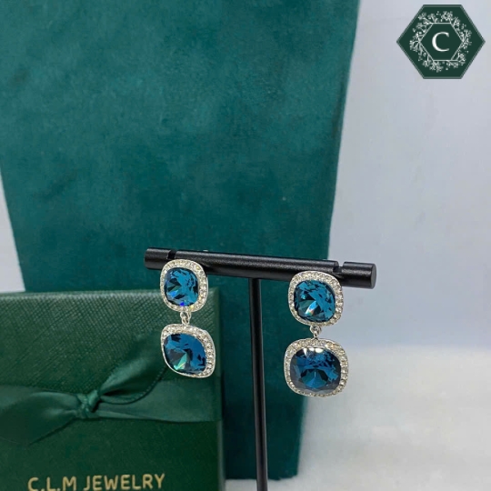 Bông Tai Bạc Đính Đá Xanh Dương MS262