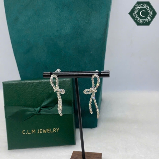 Bông Tai Bạc Hình Nơ Đính Đá Full MS255