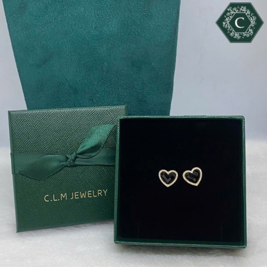 Bông Tai Bạc Hình Trái Tim Đính Đá Đen MS263