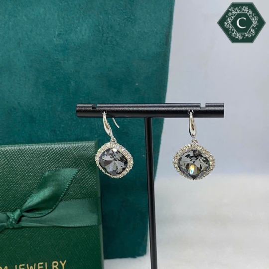 Bông Tai Bạc Móc Câu Đính Đá Đen MS261
