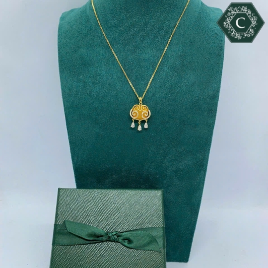 Dây Chuyền Bạc Khoá Đồng Tâm Đính Ngọc Hổ Phách Sáp Ong MS741