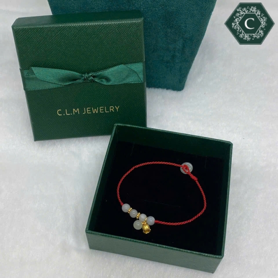 Vòng Tay Chỉ Đỏ Charm Nụ Hoa và Bi Cẩm Thạch MS715